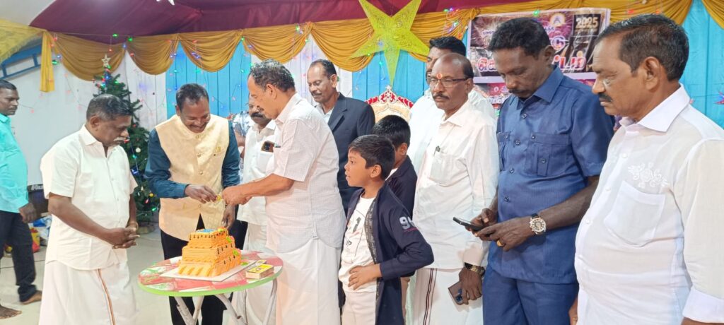 நள்ளிரவு பிரார்த்தனைகளும் 2024 ம் ஆண்டிற்க்கு நன்றி தெரிவித்து வழியனுப்பும் விதமாக கலைநிகழ்ச்சிகளும் நடைப்பெற்றது.2025 ம் ஆண்டை வரவேற்கும் விதமாக இரவு 12 மணிக்கு முன்னாள் அமைச்சரும் சட்டமன்ற உறுப்பினருமான ஓ.எஸ்.மணியன் கலந்துக்கொண்டு கேக் வெட்டி புத்தாண்டை வரவேற்று.புத்தாண்டு பிறந்ததை முன்னிட்டு அனைவருக்கும் வாழ்த்துக்களை தெரிவித்து புத்தாடைகளை வழங்கினார் .