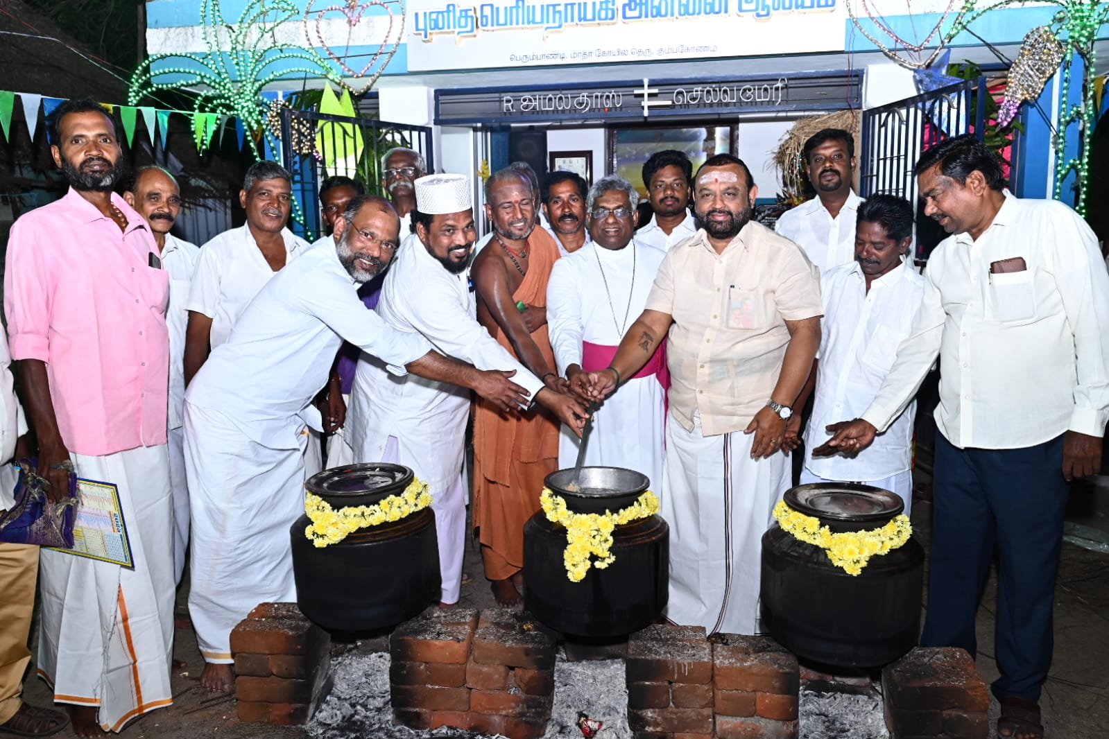 தஞ்சாவூர் மாவட்டம், கும்பகோணத்தில் உள்ள பெரும்பாண்டி மாதா கோவில் தெருவில் புனித பெரியநாயகி மாதா ஆலயத்தில் மூன்று இராஜாக்கள் திருநாளை முன்னிட்டு சமத்துவ பொங்கல் விழா மிகச் சிறப்பாக கொண்டாடப்பட்டது.