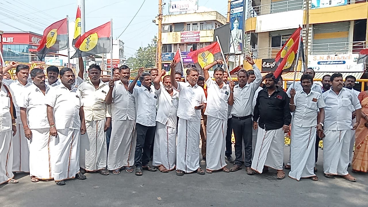 பெரம்பலூர் பழைய பேருந்து நிலையம் காந்தி சிலை அருகில் தமிழக அரசு பொங்கல் தொகுப்புடன் 1000 ரூபாய் வழங்க கோரியும், மாணவி பாலியல் வன்கொடுமையை கண்டித்தும் மாபெரும் கண்டன ஆர்ப்பாட்டம் மாவட்ட கழக செயலாளர் துரை .சிவா ஐயப்பன் தலைமையில் நடைபெற்றது. இந்நிகழ்வில் வரவேற்புரை மாவட்ட மாணவரணி எஸ் செந்தில்குமார் வழங்கினர்.