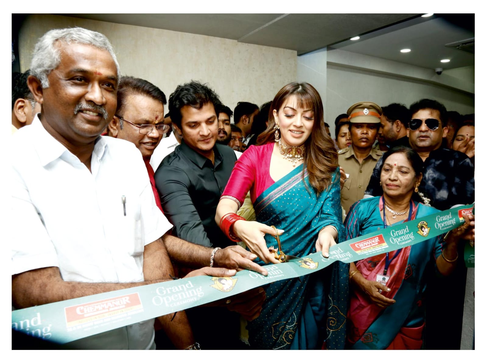 கேரளாவை சேர்ந்த தொழிலதிபர் பாபி செம்மனூரின் நகைகடைகளில் ஒன்றான செம்மனூர் ஜுவெல்லர்ஸ் கோவை டவுன்ஹால் பிக் பஜார் பகுதியில் இயங்கி வருகிறது. தற்போது அந்த கடை புதுப்பிக்கப்பட்டு திறப்பு விழா நிகழ்ச்சி இன்று நடைபெற்றது. இந்த நிகழ்வில் நடிகை ஹன்சிகா மோட்வானி சிறப்பு விருந்தினராக கலந்து கொண்டு புதுபிக்கப்பட்ட செம்மனூர் ஜுவெல்லர்ஸ் கடையை திறந்து வைத்தார். மேலும் கடையை பார்வையிட்டு சில வாடிக்கையாளர்களுக்கு நகைகளை வழங்கினார்.
