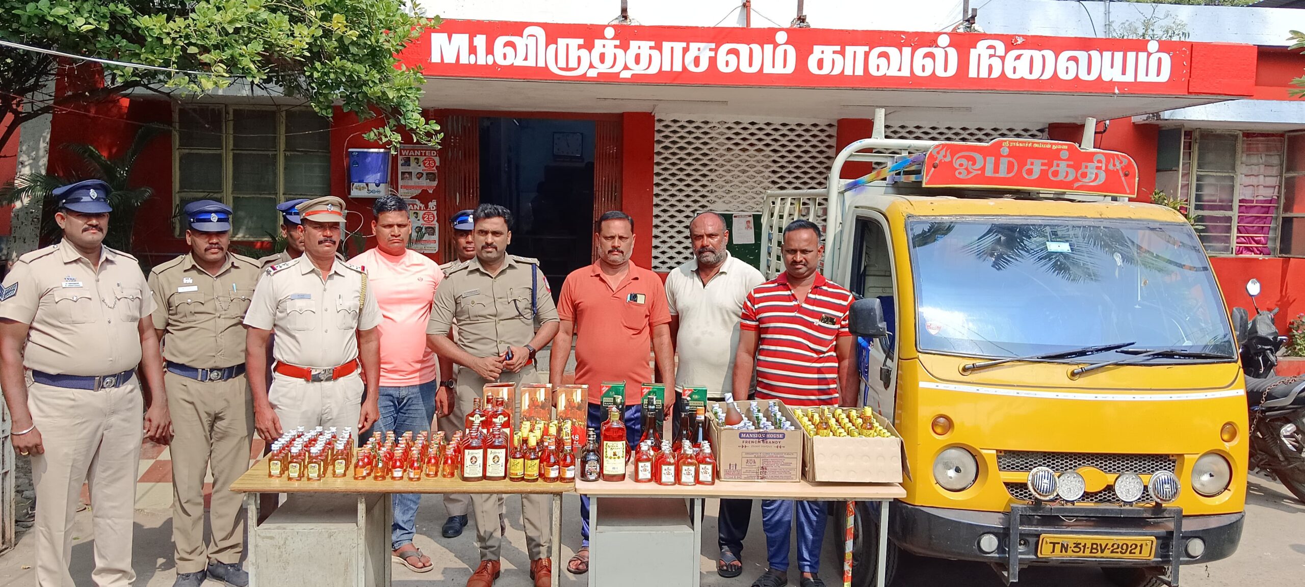 இதனையடுத்து மினி வேன் உரிமையாளர் விருத்தாசலம் லூகாஸ் தெருவை சேர்ந்த பன்னீர் (58) மற்றும் விருத்தாசலம் வட்டம் முகாசபரூர் கிராமத்தைச் சேர்ந்த மணிகண்டன் த/பெ. வேலு (25)ஆகிய இருவரையும் கைது செய்த போலீசார் மது கடத்தலுக்கு பயன்படுத்தப்பட்ட மினி வேனையும் பறிமுதல் செய்தனர்.