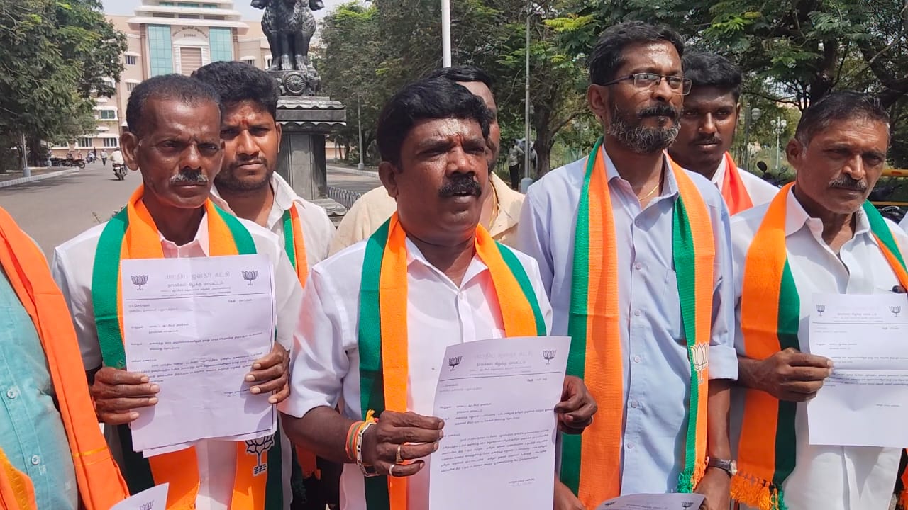 நாமக்கல் மாவட்ட ஆட்சியர் அலுவலகத்தில், நடைபெற்ற குறைதீர் கூட்டத்தில் கலந்துகொண்ட புதுச்சத்திரம் ஒன்றிய பாஜகவினர், அனைத்து அரசு அலுவலகங்களில் வைக்கப்பட்டுள்ளது போல, அனைத்து மதுபான TASMAC கடைகளிலும் தமிழக முதல்வர் மற்றும் துணை முதல்வர் ஆகியோரின் புகைப்படங்களை தமிழ்நாடு அரசு வைக்க வேண்டும் என்ற நூதன கோரிக்கையை வலியுறுத்தி மனு அளித்தனர்