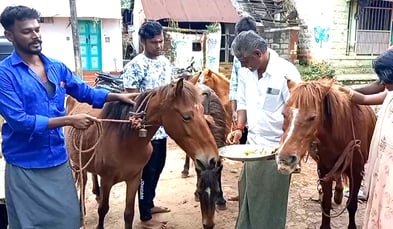 தங்களது விவசாயத்திற்கு உறுதுணையாக இருக்கும் குதிரைகளை தெய்வமாக வழிபட்டு சிறுமலை மலைக்கிராம பொதுமக்கள் குதிரை பொங்கலை கொண்டாடி வருகின்றனர்.