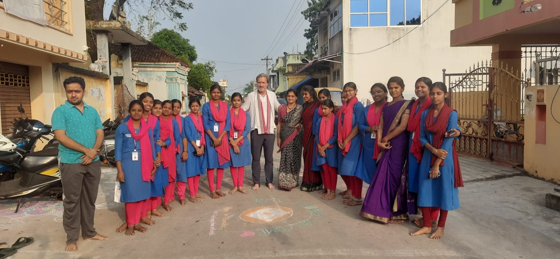 நாட்டியம் பயிலும் மாணவிகளுடன் உற்சாகமாக நடனமாடி மகிழ்ச்சியை கொண்டாடிய பிரான்ஸ் நாட்டு தம்பதிகள்..
