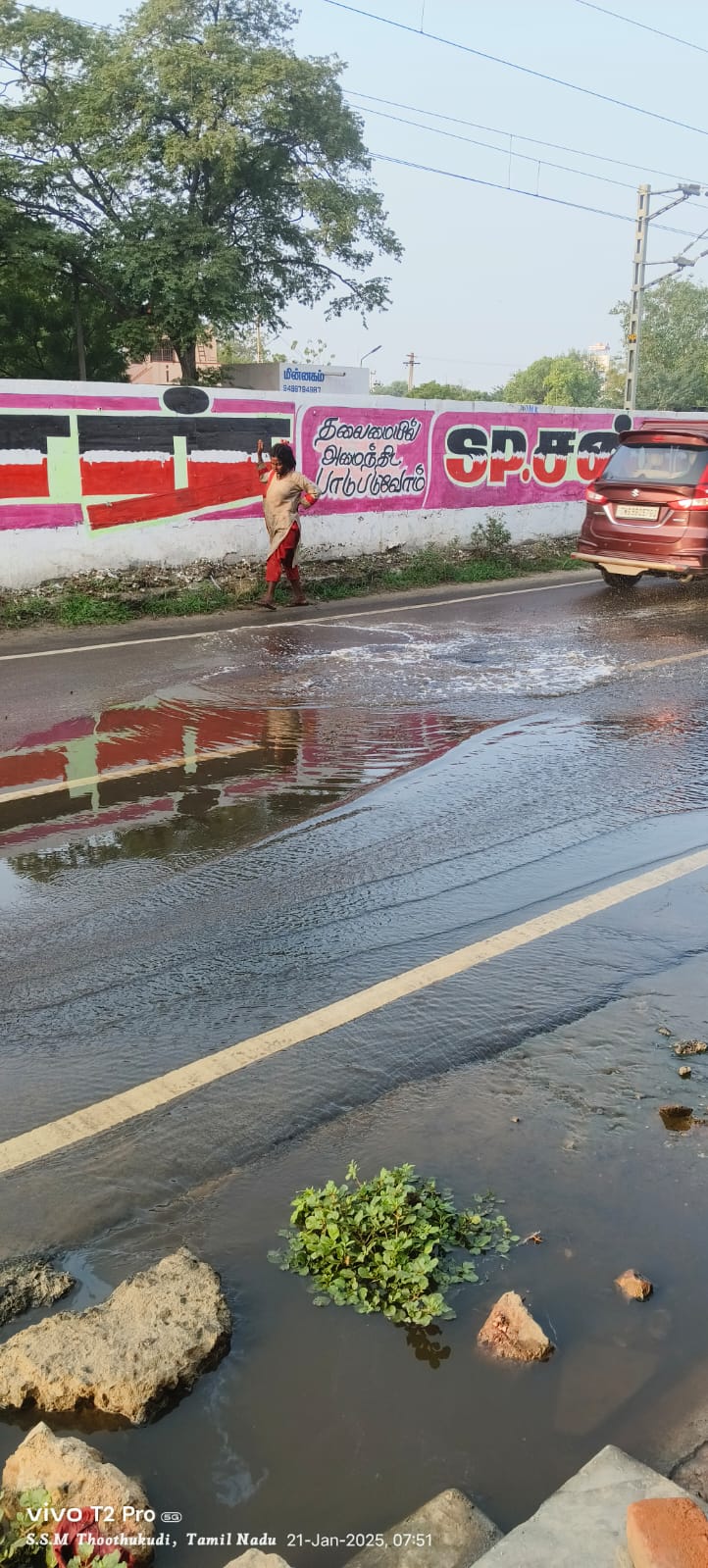 தூத்துக்குடி மாநகராட்சி மாநகரில் பாதாள சாக்கடை அமைத்துள்ளது இந்த பாதாள சாக்கடை வழியாக பல வார்டுகளில் கழிவு நீர் ரோடுகளில் சென்று கொண்டு தான் உள்ளது இந்த நிலையில் ஆண்டாள் தெரு மெயின் ரோடு கருத்த பாலம் அருகில் உள்ள பாதாள சாக்கடை மூடி வழியாக பல மாதங்களாக கழிவு நீர் வெளியே வருகிறது இதனால் வாகனத்தில் செல்லும் வாகன ஓட்டிகள் பெரிதும் சிரமப்படுகின்றனர்