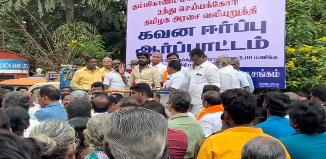 கும்பகோணம் பேருந்து நிலையம் மாற்றத்திற்கு எதிர்ப்பு தெரிவித்து கவன ஈர்ப்பு ஆர்ப்பாட்டம்