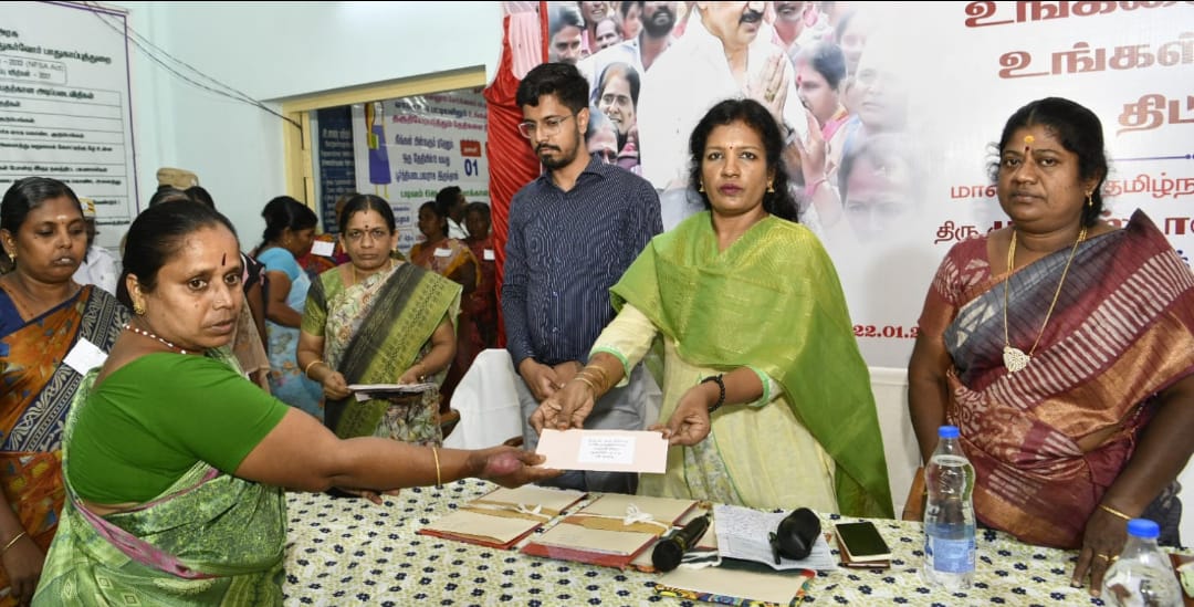 உங்களைத் தேடி உங்கள் ஊரில் திட்டத்தின் கீழ் தேனி தாலுகா அலுவலக கூட்ட அரங்கில் மாவட்ட ஆட்சித் தலைவர் ஆர் வி ஷஜீவனா பயனாளிகளுக்கு நலத்திட்ட உதவிகளை வழங்கினார்