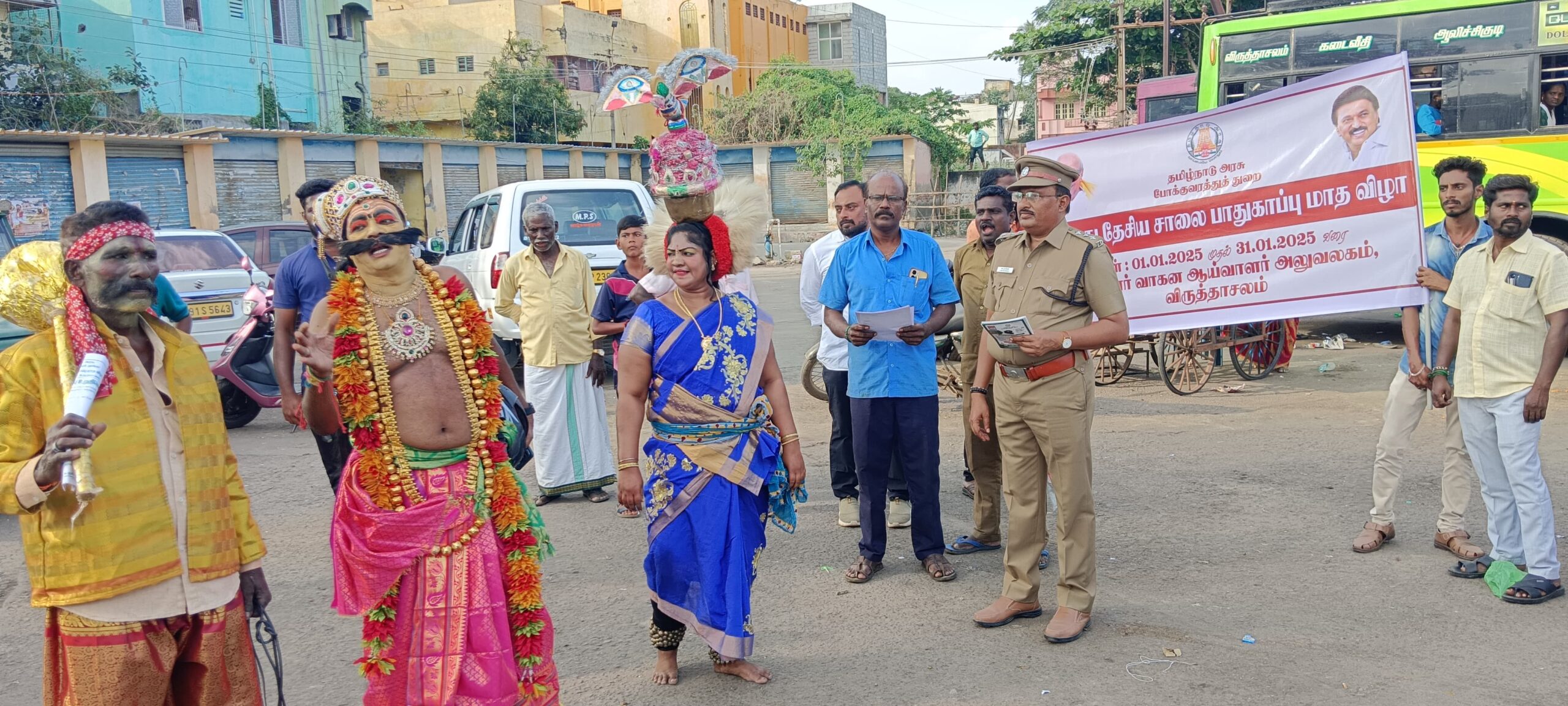 விருத்தாசலம் பேருந்து நிலையத்தில் 36 ஆவது தேசிய சாலை பாதுகாப்பு மாதத்தை முன்னிட்டு விழிப்புணர்வு கலை நிகழ்ச்சி நடத்தினர்…