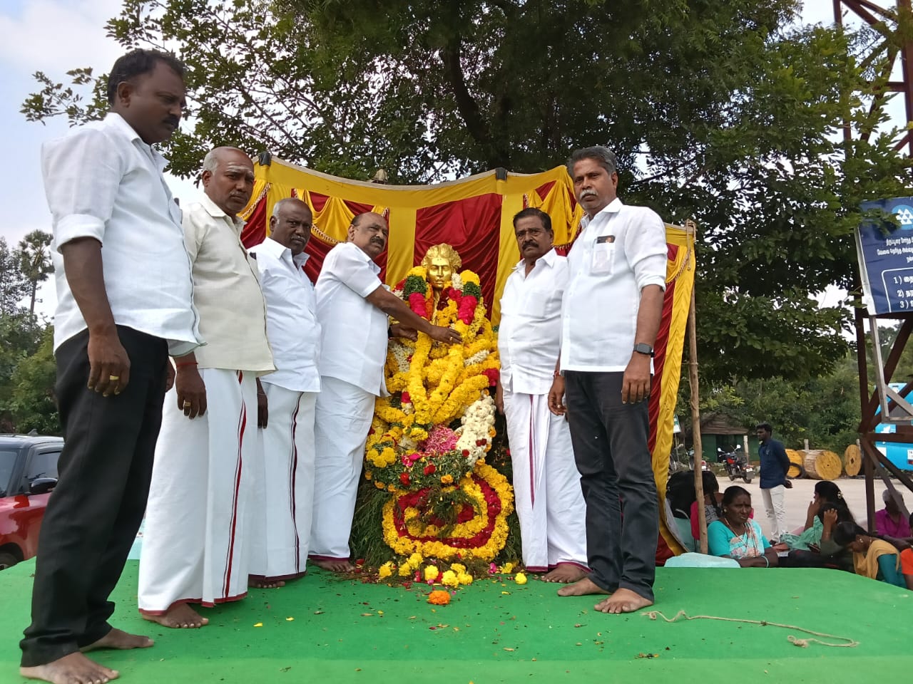 கு. சின்னப்பா மாலை அணிவித்து மரியாதை செய்தார்கள் உடன் மாவட்ட கழக செயலாளர்க. ராமநாதன் தலைமை செயற்குழு உறுப்பினர் பெ. தங்கவேல்அரியலூர் வடக்கு ஒன்றிய செயலாளர்