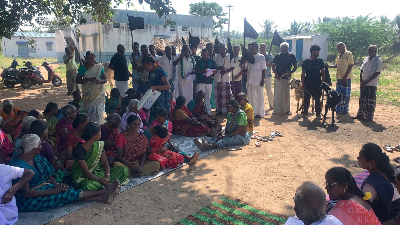 ஆனால் தற்போது வரை எவ்வித நடவடிக்கையும் எடுக்காத சூழ்நிலையில் நேற்று கிராம சபை கூட்டத்தில் விவசாயிகள் மாவட்ட நிர்வாகத்தையும் தமிழக அரசையும் கண்டிக்கும் வண்ணம் தங்களது கால்நடைகளுடன் கருப்புக் கொடிகளை ஏந்திக் கொண்டு கலந்து கொண்டனர்.