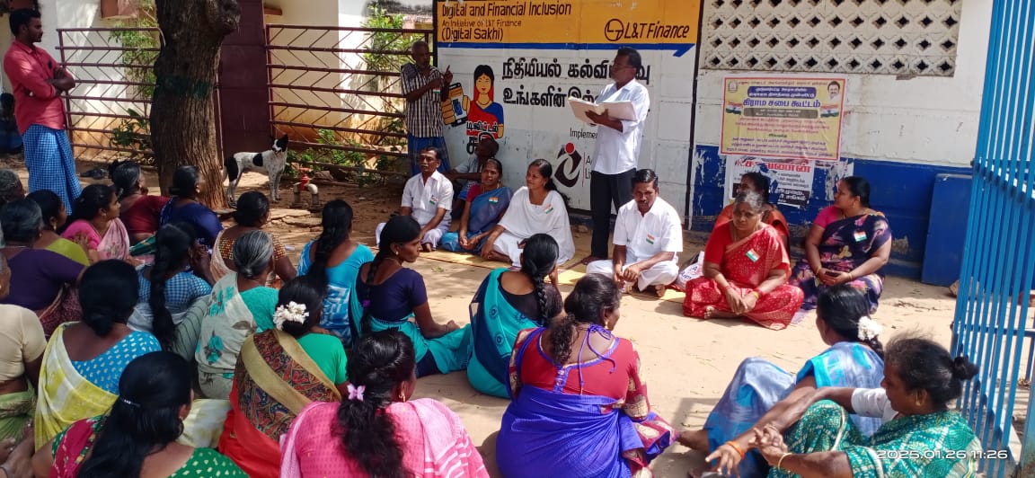 பெரியஊர்சேரி ஊராட்சியில் ஊராட்சி செயலர் முத்துக்குமார், கலந்துகொண்டு தீர்மானங்களை வாசித்தார்