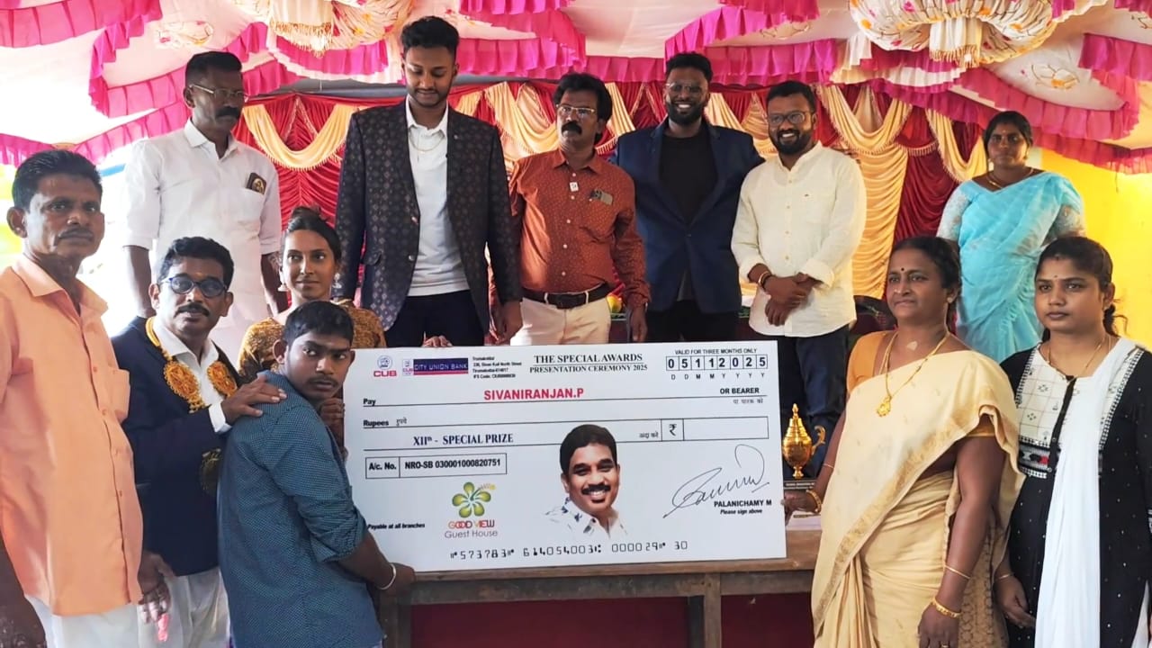 திருவாரூர் மாவட்டம் மன்னார்குடி அருகே திருமக்கோட்டை அரசு ஆண்கள் மற்றும் பெண்கள் மேல்நிலைப் பள்ளியில் 2024-25 ம் கல்வியாண்டில் 12 ம் வகுப்பு அரசு பொதுத்தேர்வில் முதல் இடங்களை பிடித்த மாணவர்களுக்கு தலா ரூ.50 ஆயிரம், இரண்டாம் இடம் பிடித்த மாணவர்களுக்கு ரூ.25 ஆயிரம், மூன்றாம் இடம் பிடித்த மாணவர்களுக்கு ரூ.15 ஆயிரமும் மற்றும் 10 ம் வகுப்பில் முதல் மூன்று இடங்களைப் பிடித்த மாணவர்களுக்கு தலா ரூ.25 ஆயிரம் ரூ.15 ஆயிரமும் அதை தொடர்ந்து ரூ.10 ஆயிரமும் வழங்கப்பட்டது.