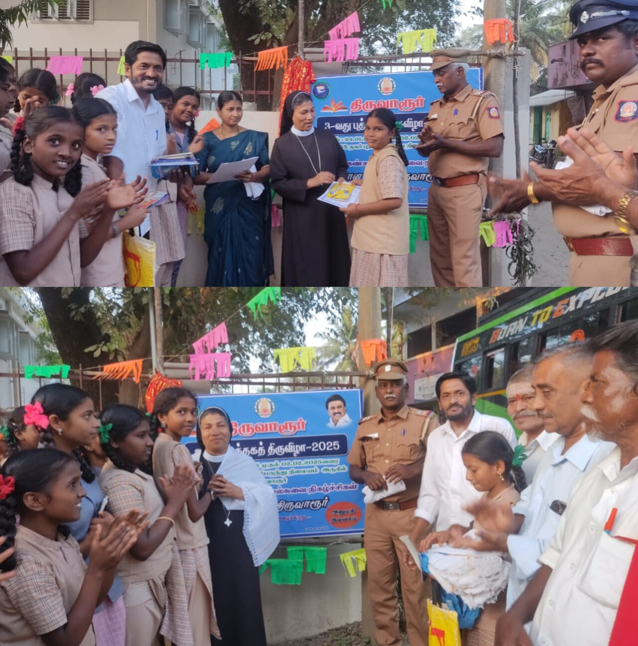 தொடர்ந்து காவல்துறை அதிகாரி ஆரிய பகவான் போக்குவரத்து மற்றும் நடைபாதை பற்றி மாணவர்களுக்கு எடுத்துரைத்தார். நிகழ்ச்சிக்கு சிறப்பு விருந்தினராக கார்மல் மெட்ரிகுலேஷன் ஸ்கூல் தலைமை ஆசிரியை ஜோஸ்பின் கலந்துகொண்டு மாணவ,மாணவியர் களுக்கு புத்தகம் வாசித்தலின் அவசியத்தை பற்றியும், எழுதுதகள் பற்றியும் விளக்கமாக எடுத்துரைத்தார். தொடர்ந்து வருகை தந்த அனைத்து மாணவர்களுக்கும் சான்றிதழ் மற்றும் நினைவு பரிசுகளை வழங்கினார்.
