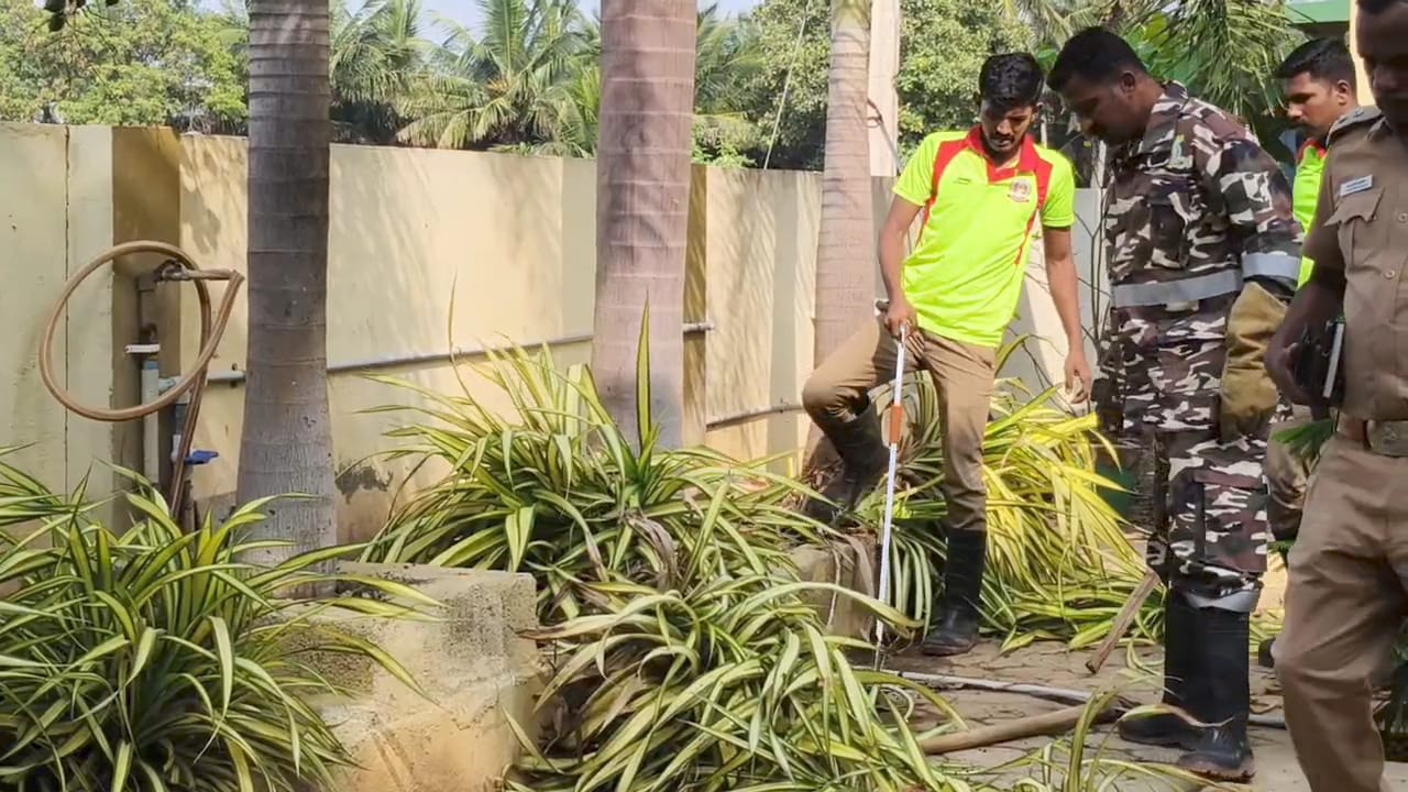 திருப்பூர் மாவட்டம் பல்லடம் அருகே சின்னூரில் பொள்ளாச்சி சாலையில் தனியார் பள்ளி இயங்கி வருகிறது பள்ளியில் 1000. மேற்பட்ட மாணவர்கள் பயின்ற நிலையில் இன்று பள்ளி முடியும் நேரத்தில் பள்ளி வளாகத்துக்குள் சாரைப்பாம்பு ஒன்று புகுந்ததால் பரபரப்பு ஏற்பட்டது. பள்ளி நிர்வாகத்தினர் உடனடியாக பல்லடம் தீயணைப்பு துறைக்கு தகவல் அளித்தனர் பள்ளி வளாகத்திற்கு விரைந்து வந்த பல்லடம் தீயணைப்பு துறை வீரர்கள் துரிதமாக செயல்பட்டு புதருக்குள் மறைந்திருந்த சாரைப்பாம்பை உயிருடன் நீட்டனர் உயிருடன் மீட்கப்பட்ட பாம்பை காட்டுப் பகுதியில் விட்டனர். தனியார் பள்ளி வளாகத்துக்குள் பாம்பு புகுந்ததால் சிறிது நேரம் பள்ளியில் பரபரப்பு ஏற்பட்டது.