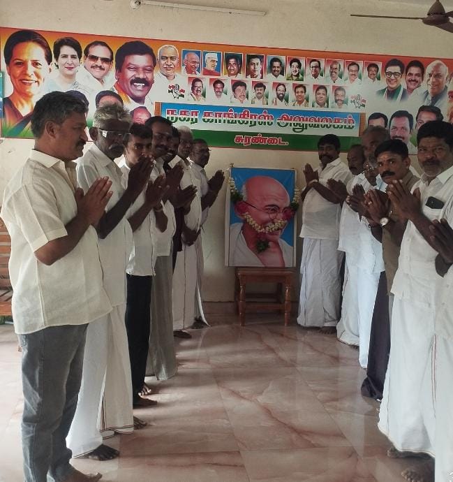 நிகழ்ச்சிக்கு நகர காங்கிரஸ் தலைவர் ஜெயபால் தலைமை வகித்தார் தென்காசி எம்எல்ஏ எஸ். பழனி நாடார் காந்தியின் படத்திற்கு மாலை அணிவித்து மரியாதை செலுத்தி உறுதிமொழி எடுத்தனர் இதில் காங்கிரஸ் நிர்வாகிகள் கவுன்சிலர்கள் மற்றும் தொண்டர்கள் கலந்து கொண்டனர்