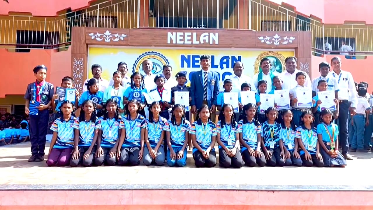 மேலும் நீலன் பள்ளியில் விளையாட்டுப்போட்டிகளில் வெற்றிப்பெற்ற மாணவ, மாணவிகளுக்கு கபடிவீரர் அபினேஷ் மோகன்தாஸ் சான்றுகள், கோப்பைகள் வழங்கி தான் பெற்ற தங்கப்பதக்கத்தை காண்பித்து அனைவரும் விளையாட்டில் சிறந்து விளங்க வேண்டும் என வாழ்த்துக்கள் தெரிவித்தார்.