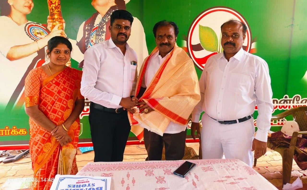 இன்னலையில் தென்காசி தெற்கு மாவட்ட அதிமுக வழக்கறிஞர் அணி இணைச் செயலாளர் ஆயிரப்பேரி கே.சுந்தர் தென்காசி தெற்கு மாவட்ட அதிமுக செயலாளரும், முன்னாள் சட்டமன்ற உறுப்பினருமான எஸ். செல்வ மோகன்தாஸ் பாண்டியனை சந்தித்து கைத்தறி ஆடை அணிவித்து வாழ்த்து பெற்றார்.