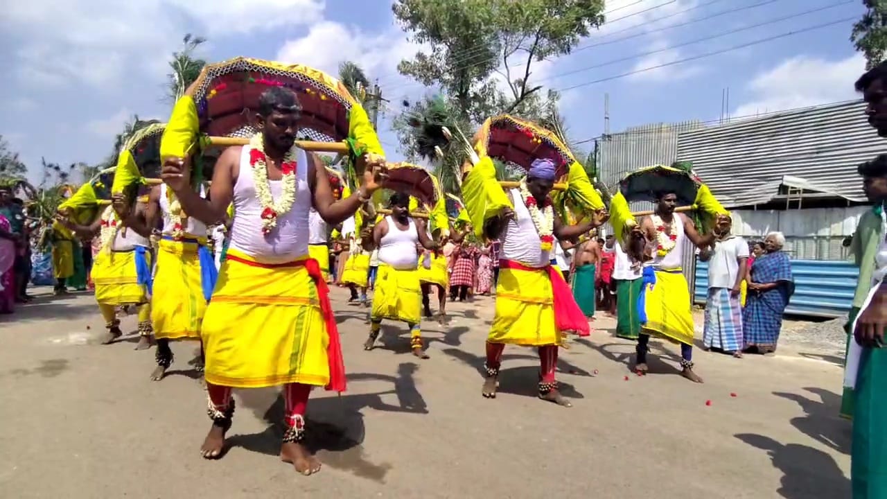 கோவிலில் இருந்து பழனி ஆண்டவர் சிறப்பு அலங்காரத்தில் வேலுடன் ஆட்கொண்ட விநாயகர் கோவிலின் அருகே எழுந்தருள திரளான பக்தர்கள், பால்காவடி, பன்னீர் காவடி, அலகு காவடி எடுத்து கோவிலின் நான்கு ரத வீதிகளில் ஊர்வலமாக வந்தனர். வீடுகள் தோறும் பழனி ஆண்டவருக்கு பொதுமக்கள் அர்ச்சனை செய்து வழிபட்டனர். 500 க்குக் மேற்பட்ட பக்தர்கள் கந்தனுக்கு அரோகரா! முருகனுக்கு அரோகரா! என கோஷம் எழுப்பி பக்தி பரவசத்தில் காவடியுடன் மேள தாளங்கள் முழங்க உற்சாகமாக காவடியாட்டத்துடன் நான்குரத வீதிகளில் வலம் வந்து கோவிலை அடைந்து நேர்த்திக்கடன் செலுத்தி வழிபாடு செய்தனர்.