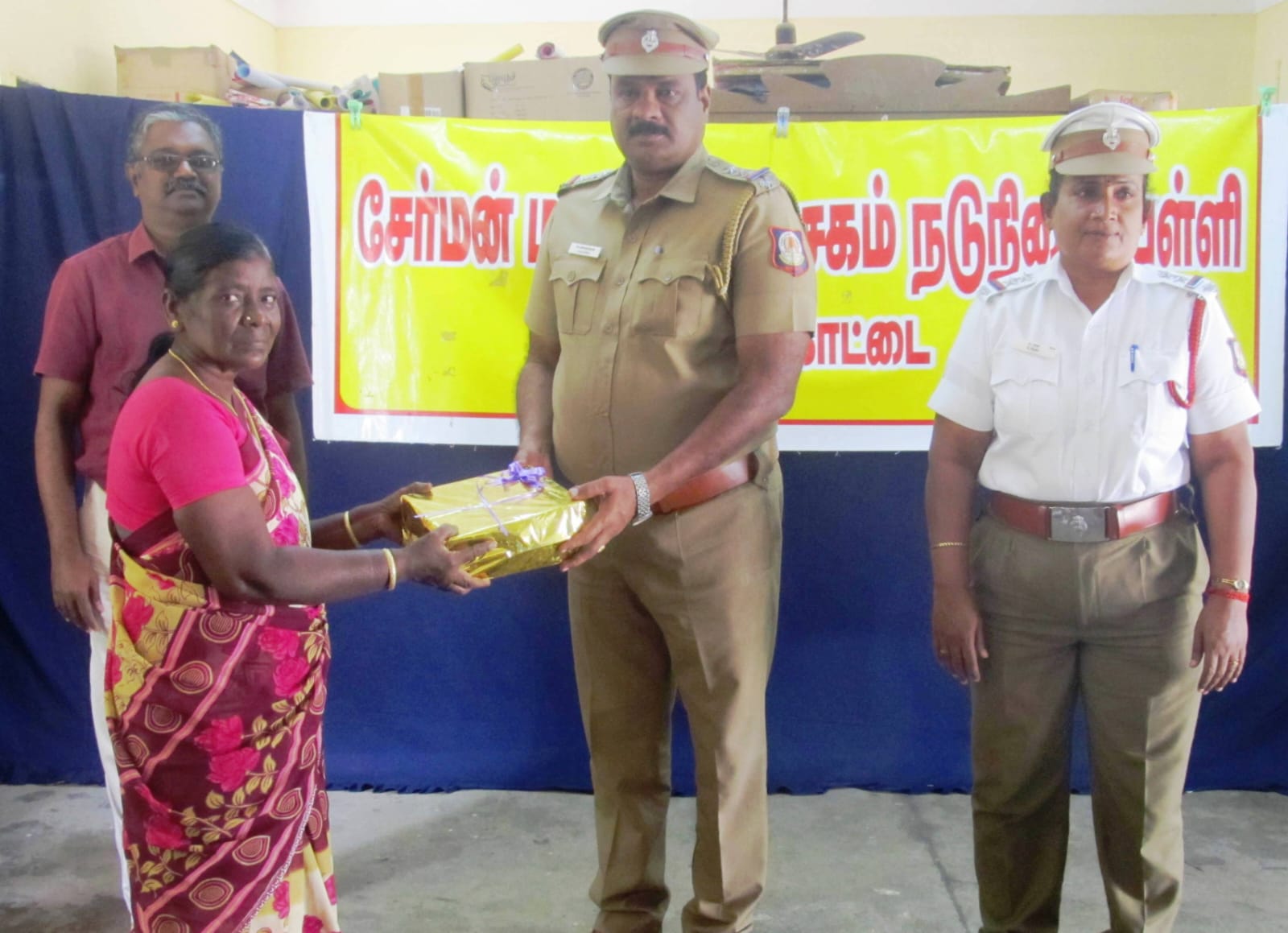 சிவகங்கை மாவட்டம் தேவகோட்டை சேர்மன் மாணிக்கவாசகம் நடுநிலைப் பள்ளியில் சத்துணவு சமையலராக பணியாற்றி வருபவர் தமிழரசி. இவர் பள்ளியில் பயிலும் மாணவர்களுக்கு நல்ல முறையில் உணவு சமைத்து தருவதை பள்ளி பெற்றோர் சார்பில் பாராட்டி பரிசு வழங்கும் நிகழ்வு நடைபெற்றது.தேவகோட்டை போலீஸ் இன்ஸ்பெக்டர் அலெக்ஸ்ராஜ் , போக்குவரத்து காவல் சப் இன்ஸ்பெக்டர் கலா மற்றும் பள்ளி தலைமை ஆசிரியர் லெ .சொக்கலிங்கம் ஆகியோர் சமையலர் தமிழரசிக்கு பாராட்டி பரிசு வழங்கினார்கள்.நிகழ்வில் பள்ளி ஆசிரியர்கள் முத்துலட்சுமி, ஸ்ரீதர் உட்பட ஏராளமான பெற்றோர்கள் சமையலரின் பணியை பாராட்டி பேசினார்கள்.