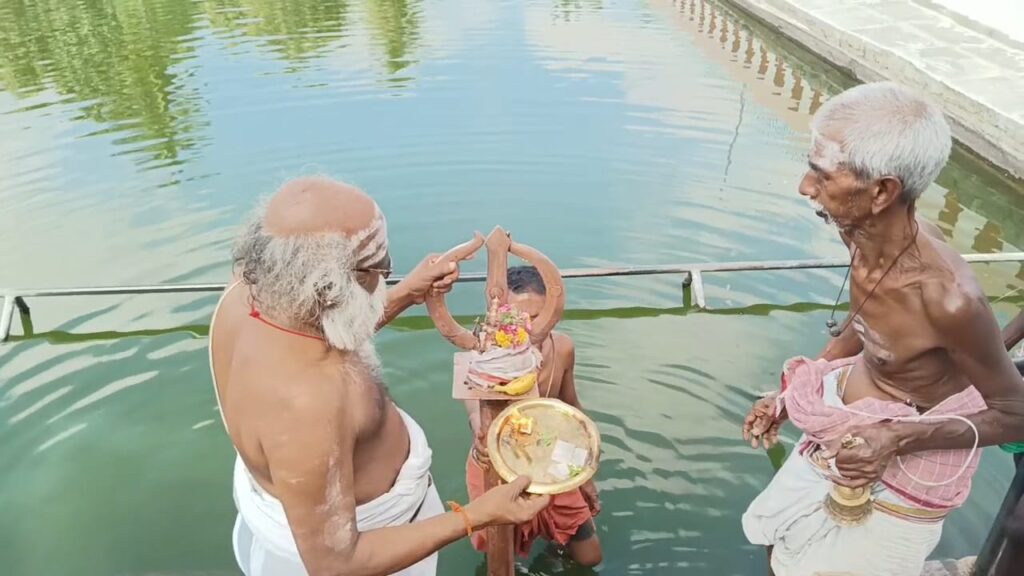 இக்கோவிலில் அக்னி, சூரியன் ,சந்திரன் என மூன்று தீர்த்தங்கள் உள்ளன. இன்நிலையில் மாசி மாத பிறப்பை முன்னிட்டு தீர்த்தக் கரையில் எழுந்தருளிய அஸ்திர தேவருக்கு சிறப்பு அபிஷேக ஆராதனைகள் நடைபெற்றன. தொடர்ந்து அஸ்திர தேவர் மூன்று தீர்த்த குளங்களிளும் தீர்த்தம் அளிக்கும் தீர்த்தவாரி நிகழ்ச்சி நடைபெற்றது , இந்நிகழ்வின் போது திரளான பக்தர்கள் தீர்த்த குளங்களில் நீராடி வழிபட்டனர்.தீர்த்தவாரி பூஜைகளை குரு குருக்கள் செய்து வைத்தார்.