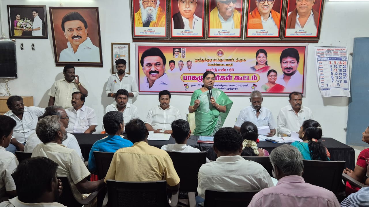 வடக்கு மாவட்ட திமுக செயலாளரும் சமூக நலன் மற்றும் மகளிர் உரிமைத்துறை அமைச்சர் கீதாஜீவன் பல்வேறு ஆலோசனைகள் வழங்கி பேசுகையில்