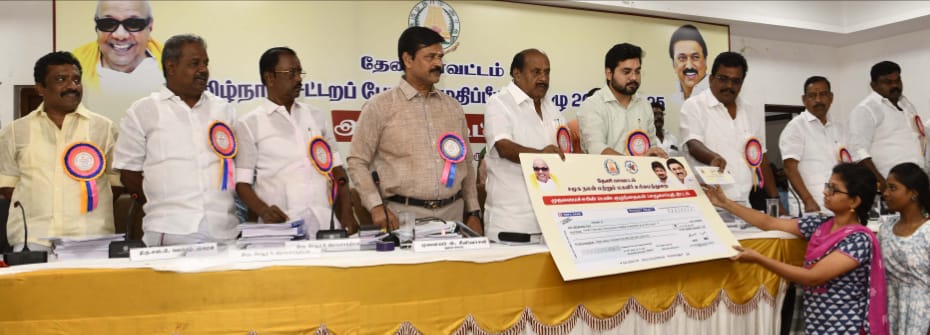 தேனி மாவட்ட ஊரக வளர்ச்சி முகமை கூட்ட அரங்கில் திட்ட அறையில் வடகரையில் மேலாண்மை பொறியியல் துறையின் சார்பில் தமிழ்நாடு சட்டமன்ற மதிப்பீட்டு குழு 2024.2025 ஆண்டின் தலைவர் எஸ் . காந்தி ராஜன் மாவட்ட ஆட்சித் தலைவர் ரஞ்ஜீத் சிங் தேனி பாராளுமன்ற உறுப்பினர் தங்க தமிழ்ச்செல்வன் எம்பி சட்டமன்ற பேரவை மதிப்பீட்டுக் குழு உறுப்பினர்கள் எம்எல்ஏக்கள் வந்தவாசி எஸ் அம்பேத்குமார் திருவாடானை ஆர் . எம். கருமாணிக்கம் ஆரணி சேவூர் எஸ் .ராமச்சந்திரன் சீர்காழி மு. பன்னீர்செல்வம் வேதாரண்யம் ஓ.எஸ் மணியன் சங்கரன்கோவில் ஈ. ராஜா தருமபுரி எஸ்பி வெங்கடேஸ்வரன் மற்றும் பெரிய குளம் சட்டமன்ற உறுப்பினர் கே எஸ் சரவணக்குமார் ஆகியோர் முன்னிலையில் தமிழ்நாடு சட்டமன்றப் பேரவை மதிப்பீட்டுக் குழு ஆய்வுக்கூட்டத்தில் பயனாளிகளுக்கு நலத்திட்ட உதவிகளை வழங்கினார்கள்.