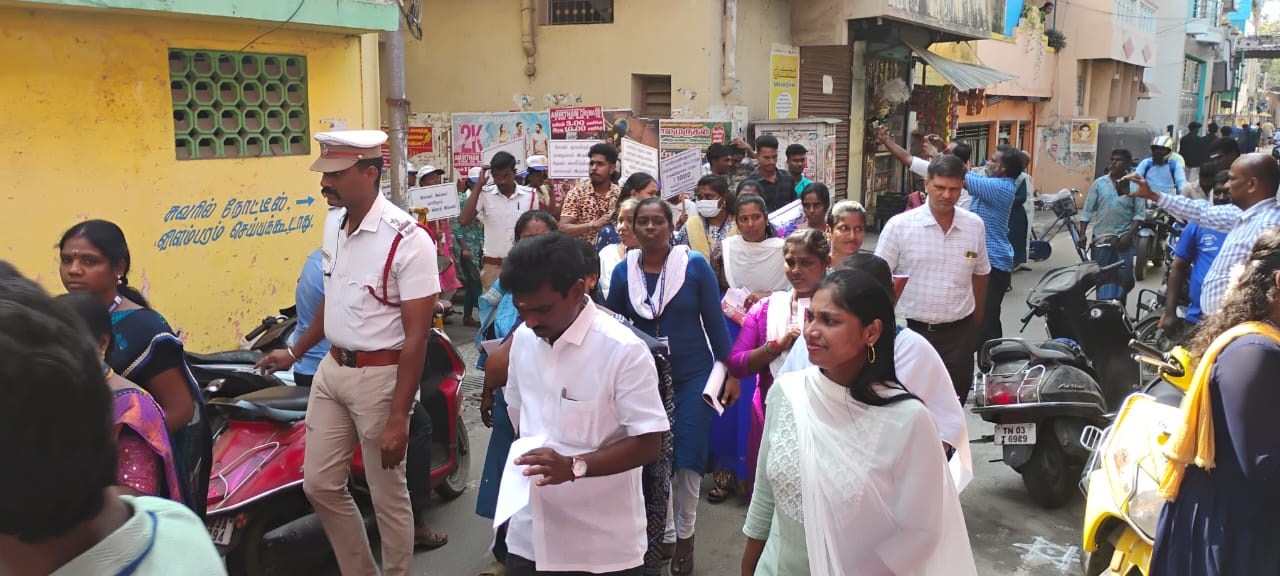 தொடர்ந்து, பேரணி சன்னதி தெரு வழியாக சென்று, மீண்டும் கல்லுாரி வளாகத்தை அடைந்தது.