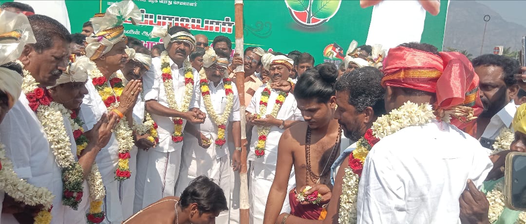 இந்த கூட்டத்தில் அண்ணா திமுக பொதுச்செயலாளரும் முன்னாள் தமிழக முதல்வரும் தமிழக எதிர் கட்சி தலைவருமான எடப்பாடி பழனிச்சாமி கலந்து கொண்டு சிறப்புரையாற்றுகிறார் இந்த பொதுக் கூட்டத்திற்கான பந்தல் அமைக்கும் பணிக்கான அடிக்கல் நாட்டு விழா வெகு சிறப்பாக நடைபெற்றது