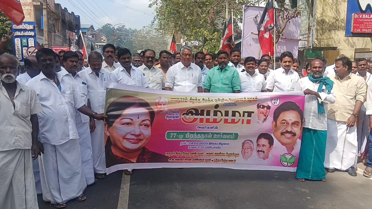 பாபநாசத்தில் தமிழக முன்னாள் முதல்வர் ஜெயலலிதாவின் 77 ஆம் ஆண்டு பிறந்த நாளை முன்னிட்டு அதிமுகவினர் ஊர்வலமாக சென்று மாலை அணிவித்து மரியாதை செலுத்தி இனிப்புகள் வழங்கி கொண்டாட்டம் …..