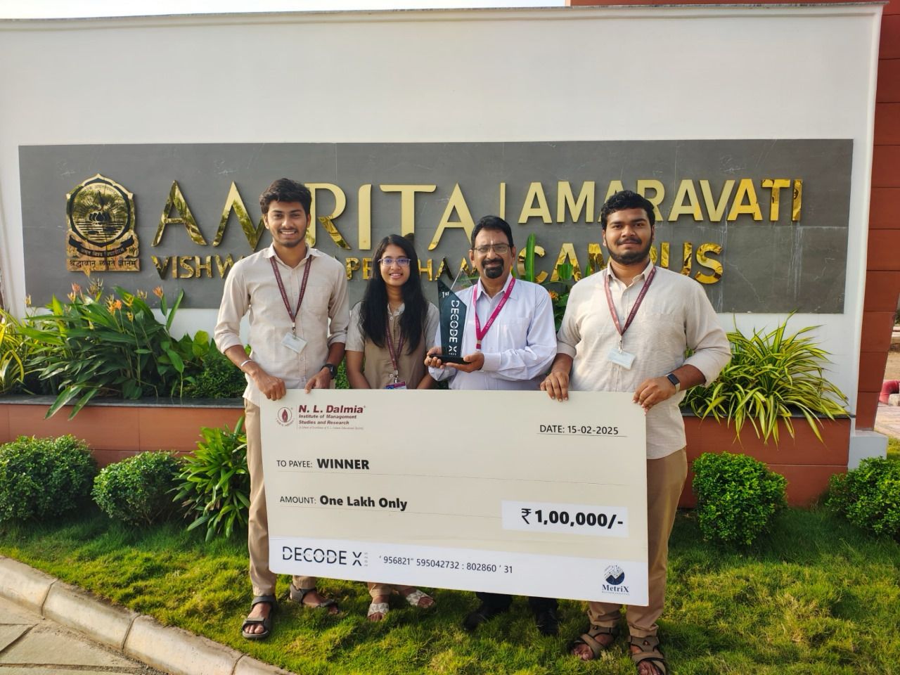 அமராவதி, ஆந்திரப் பிரதேசம்: மும்பையில் உள்ள N. L. டால்மியா மேலாண்மை ஆய்வுகள் மற்றும் ஆராய்ச்சி நிறுவனத்தில் (NLDIMSR) பிப்ரவரி 14-15 ஆகிய தேதிகளில் நடைபெற்ற தேசிய அளவிலான ஹேக்கத்தானான DecodeX 2025-இல் அமராவதி வளாகத்தின் அம்ருதா விஸ்வ வித்யாபீடத்தைச் சேர்ந்த மாணவர்கள் குழு முதல் பரிசைப் பெற்றது. அமராவதியின் அம்ருதா கணினிப் பள்ளியைச் சேர்ந்த பிரஜ்வாலா யட்லபள்ளி, நாயுடு யஸ்வந்த் ரெட்டி மற்றும் பாரிஸ் ஸ்ரீ வத்சல் ஆகியோர் அடங்கிய CodeBlue குழு, PalletSense போட்டியில் ₹100,000 முதல் பரிசை வென்றது.