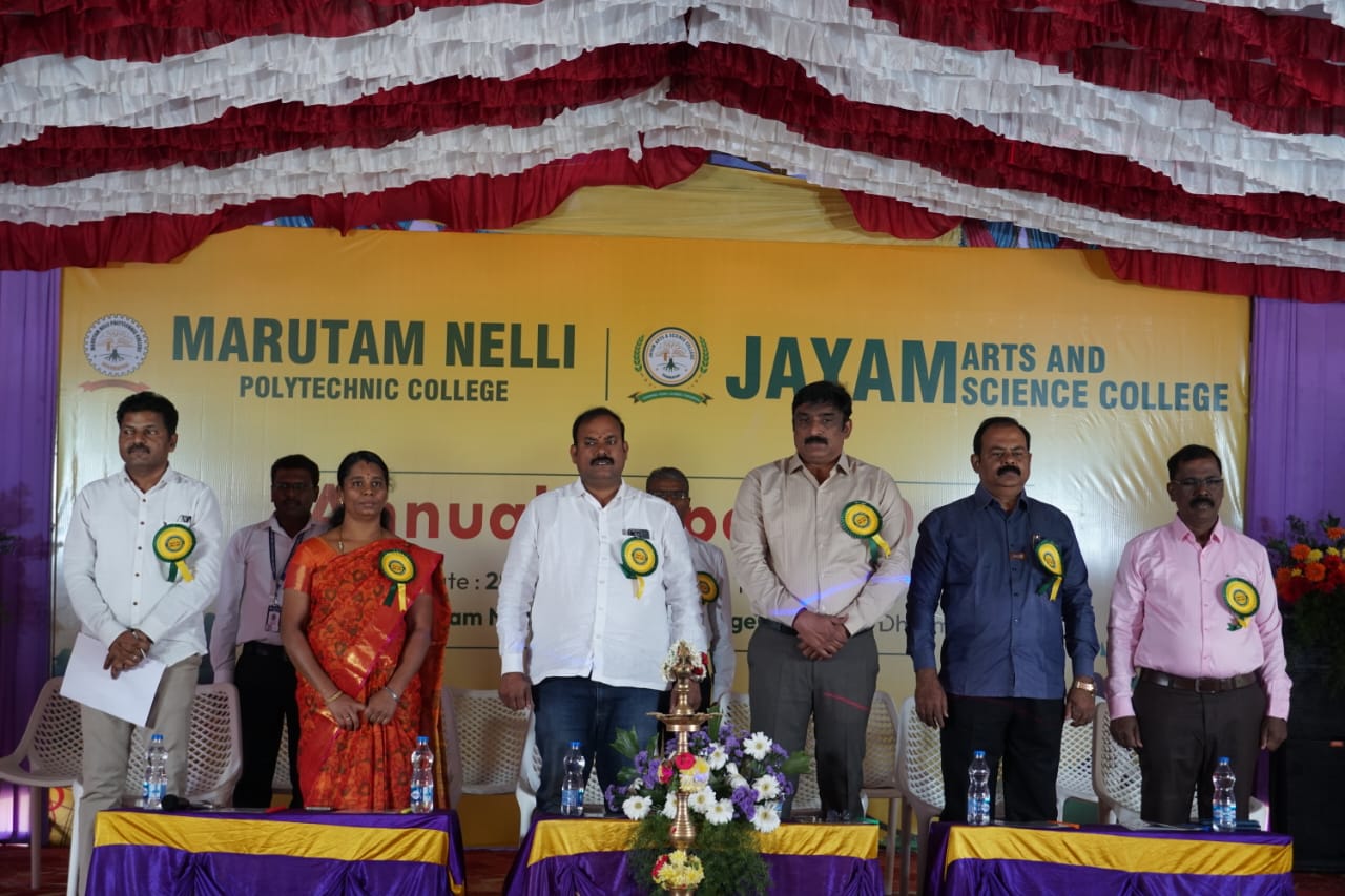 குழுமத்தின் நிர்வாக இயக்குநர் செந்தில், தொப்பூர் ஜெயலட்சுமி பொறியியல் கல்லூரி முதல்வர் தமிழரசு , ஆங்கில மொழி பயிற்றுநர் ஆனந்தன் உள்ளிட்டோர் வாழ்த்துரை வழங்கினர். ஜெயம் கலை மற்றும் அறிவியல் கல்லூரியின் முதல்வர் சி.பரஞ்சோதி, மருதம் நெல்லி பாலிடெக்னிக் கல்லூரி முதல்வர் நா.மகேந்திரன் ஆகியோர் ஆண்டறிக்கை வாசித்தனர்.