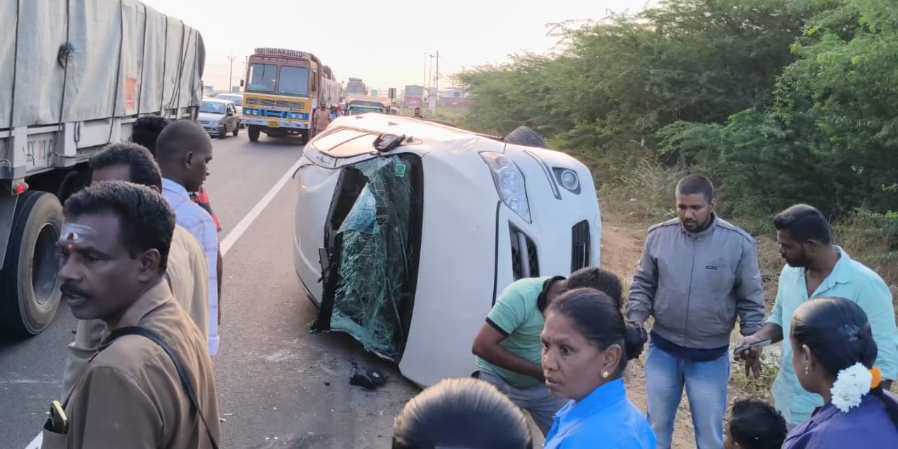 மேலும் கோவை திருச்சி தேசிய நெடுஞ்சாலையில் சிறிது நேரம் போக்குவரத்து பாதிக்கப்பட்டது. இந்த விபத்து தொடர்பாக போலீசார் விசாரணை மேற்கொண்டு வருகின்றனர்.