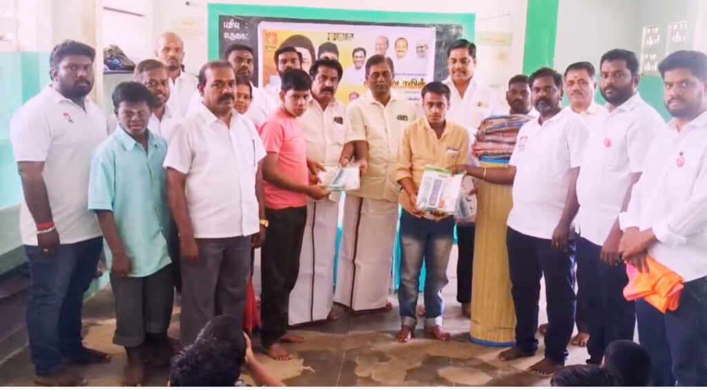 தஞ்சாவூர் மாவட்டம் பாபநாசம் சட்டமன்ற தொகுதிக்கு உட்பட்ட அய்யம்பேட்டை மற்றும் வடசருக்கை பகுதியில் உள்ள மாற்றுத்திறனாளிகள் பள்ளி, ஊராட்சி ஒன்றிய தொடக்கப் பள்ளிகளில் பயிலும் மாணவர்களுக்கு தஞ்சை வடக்கு மாவட்ட திமுக தகவல் தொழில்நுட்ப அணி சார்பில் பாய்.பெட்சீட், துண்டு ,எழுது பொருட்கள் நோட்டு புத்தகங்கள் வழங்கும் விழா தகவல் தொழில்நுட்ப மாவட்ட துணை அமைப்பாளர் அருண்,விவேக் தலைமையில் நடைபெற்றது.