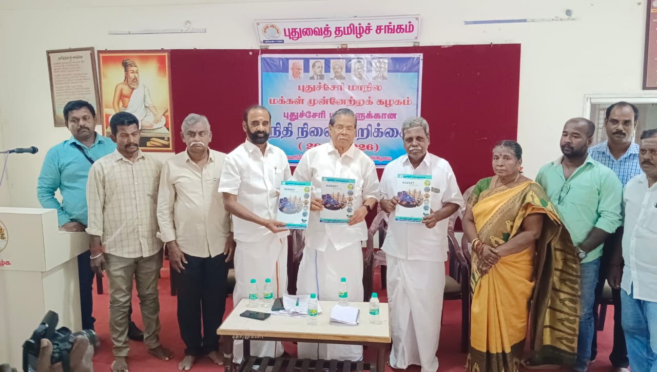 புதுச்சேரி மாநில மக்கள் முன்னேற்ற கழகத்தின் சார்பில் புதுச்சேரி வெங்கட்டா நகரில் அமைந்துள்ள தமிழ்ச் சங்கத்தில், புதுவை மாநில மக்களுக்கு பயன் படும் வகையில் 2025-26 ஆம் ஆண்டுக்கான மாதிரி நிதி நிலை அறிக்கையை வெளியிடும் நிகழ்ச்சி பத்திரிக்கையாளர்கள் மற்றும் பொதுமக்கள் முன்னிலையில் நடந்தது. நிகழ்ச்சிக்கு கழகத்தின் மாநில தலைவர் மு. இராமதாஸ் அவர்கள் தலைமையில் சேர்மன் RL வெங்கட்டராமன் முன்னிலையில் நடந்தது.