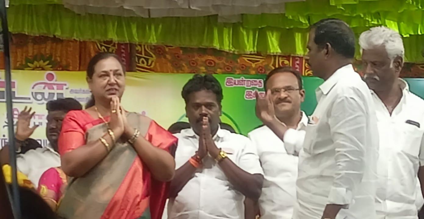 திண்டுக்கல்லில் தேமுதிக சார்பில் நடைபெற்ற முப்பெரும் விழாவில் நலத்திட்ட உதவிகளை பிரேமலதா விஜயகாந்த் வழங்கினார்.