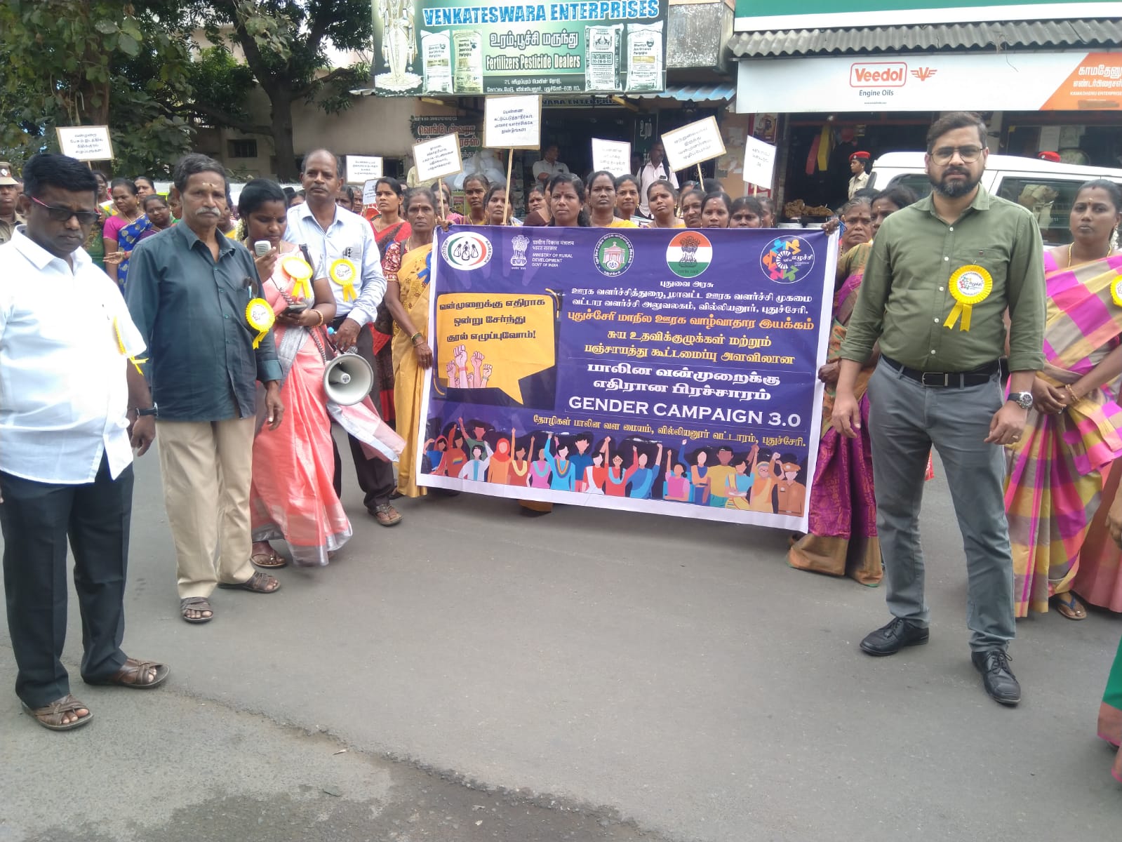 புதுச்சேரி அரசு ஊரக வளர்ச்சித் துறையின் கீழ் இயங்கி வரும் வில்லியனூர் வட்டார வளர்ச்சி அலுவலகத்தின் மூலம் செயல்பட்டு வரும் வில்லியனூர் வட்டார அளவிலான மகளிர் கூட்டமைப்பின் பெண்களின் பாதுகாப்பை முன்னிறுத்தி பாலின விழிப்புணர்வு பிரச்சாரம் நடைபெற்றது