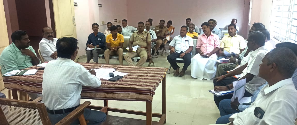 திருவாரூர் மாவட்டம் வலங்கைமான் வரதராஜன்பேட்டை தெருவில் மகா மாரியம்மன் ஆலயம் உள்ளது. இவ்வாலயம் தமிழகத்தின் தலைசிறந்த சக்தி தலங்களில் ஒன்றாகும். இவ்வாலயத்தில் வருகின்ற 23-ஆம் தேதி ஞாயிற்றுக்கிழமை புகழ்பெற்ற பாடைக்காவடி திருவிழா, 30-ஆம் தேதி ஞாயிற்றுக்கிழமை புஷ்ப பல்லாக்கு விழா நடைபெற உள்ளது. இந்நிலையில் நேற்று வலங்கைமான் தாலுக்கா அலுவலகத்தில் திருவிழா முன்னேற்பாடுகள் குறித்து அதன் தொடர்பான அனைத்து துறை அலுவலர்களுக்கான ஆலோசனை கூட்டம் நடைபெற்றது.