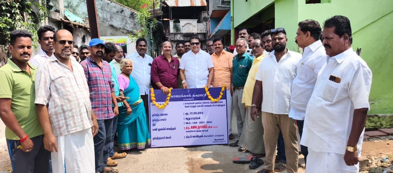 காரைக்கால் தெற்கு தொகுதிக்கு உட்பட்ட டிராமாகொட்டாகை தெரு திருக்குளத்து மேடு, போஸ்ட் ஆபீஸ் பின்புறம் ஆகிய பகுதிகளுக்கு சட்டமன்ற உறுப்பினர் மேம்பாட்டு நிதியிலிருந்து ரூபாய் 18-இலட்சம் திட்ட மதிப்பீட்டில் வண்ண கற்கள் பதிக்கும் பணியினை A.M.H.நாஜிம், ML A துவங்கி வைத்தார்கள்