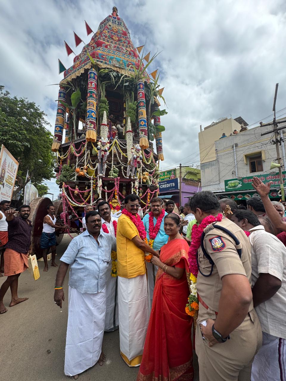 கொட்டும் மழையையும் பொருட்படுத்தாமல் பக்தர்கள் பரவசமாக தேரை வடம்பிடித்து இழுத்தார்கள் தேர் உத்தம பாளையத்தின் இதய பகுதிகளான கிழக்குரத வீதி தெற்கு ரத வீதி வடக்கு ரத வீதியாக கிழக்குரத வீதியில் தேர் நிலைக்கு வந்தது மத நல்லிணக்கத்தை வலியுறுத்தும் விதமாக கோட்டைமேட்டு பகுதியில் ஜமாத்தார்கள் சார்பில் தேரை வரவேற்று பேனர் வைத்தும் பள்ளிவாசல் முன்பாக பக்தர்களுக்கு இலவசமாக குடிநீர் பாட்டில்கள் வழங்கப்பட்டன பல்வேறு அமைப்புகள் சார்பில் தேரோடும் வீதிகளில் பிரசாதம் பக்தர்கள் தாகம் தீர்க்க நீர் மோர் வழங்கினார்கள் மதியம் 2.40 மணிக்கு துவங்கி மாலை 4:30 மணிக்கு தேர் நிலைக்கு வந்தது இந்த விழாவில் பாதுகாப்பு ஏற்பாடுகளை ஏடிஎஸ் பி வினோ ஜி டிஎஸ்பிக்கள் செங்கோட்டு வேலன் பெரியசாமி சுரேஷ் ஆகியோர் தலைமையில் ஆயிரத்துக்கும் மேற்பட்ட போலீசார் பாதுகாப்பு பணியில் ஈடுபட்டிருந்தனர்