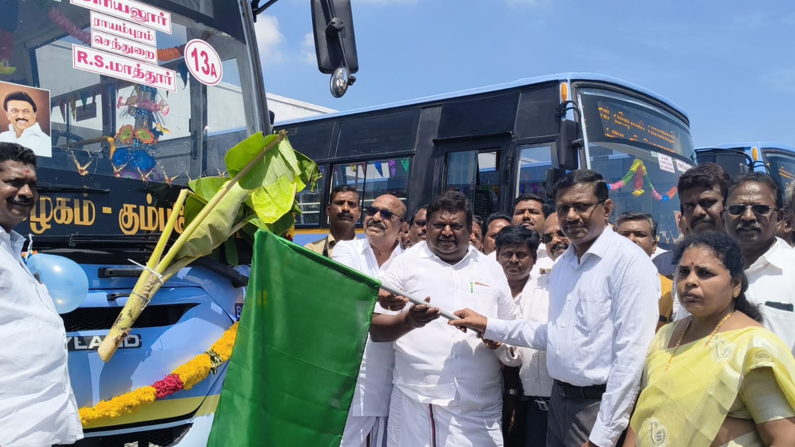 அரியலூர் பேருந்து நிலையத்தில், தமிழ்நாடு அரசு போக்குவரத்துக் கழக கும்பகோணம் கோட்டத்தின் சார்பில் 8 புதிய மகளிர் விடியல் பயண நகர பேருந்துகளை பொதுமக்களின் பயன்பாட்டிற்காக போக்குவரத்து துறை அமைச்சர் சா சி சிவசங்கர் கொடியசைத்து தொடங்கி வைத்தார்