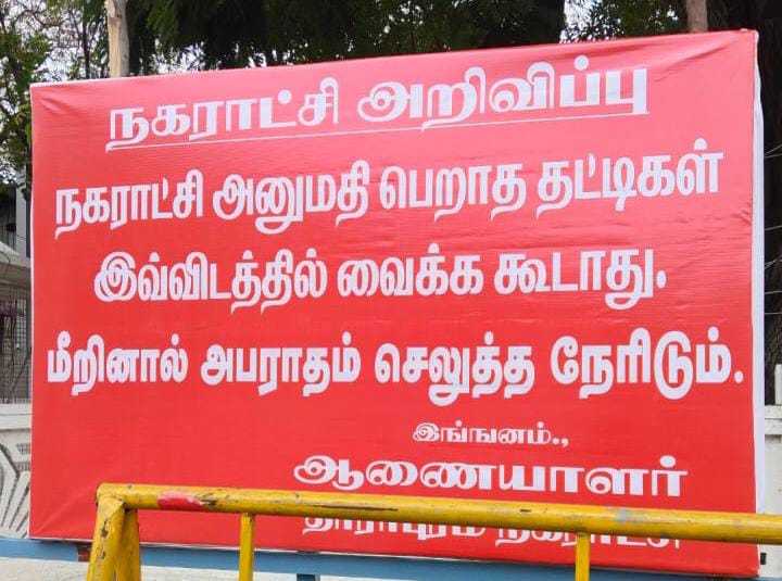 தாராபுரம் பழைய நகராட்சி அலுவலக கட்டிடம் அருகே அரசியல் கட்சியினர் ஆர்ப்பாட்டங்களும்,தலைவர்களின் பிறந்தநாள்களும், கட்சி நிகழ்ச்சிகளும் நடத்துவது வழக்கம். அடையொட்டி பழைய நகராட்சி அலுவலகம் முன்பு விளம்பர பதாகைகள் வைப்பார்கள்இந்த நிலையில் அங்கு தாராபுரம் நகராட்சி சார்பில் அனுமதி பெறாத தட்டிகள் இவ்விடத்தில் வைக்க கூடாது.மீறினால் அபராதம் செலுத்த நேரிடும் என எச்சரிக்கை பதாகை வைக்கப்பட்டுள்ளது இதனால் அரசியல் கட்சியினர் அதிருப்தி அடைந்துள்ளனர்.