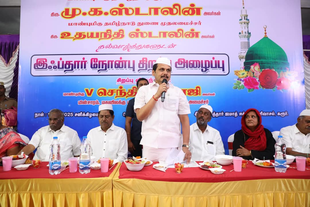 இப்தார் நோன்பு திறக்கும் நிகழ்ச்சி அமைச்சர் செந்தில் பாலாஜி பங்கேற்று சிறப்பித்தார்.