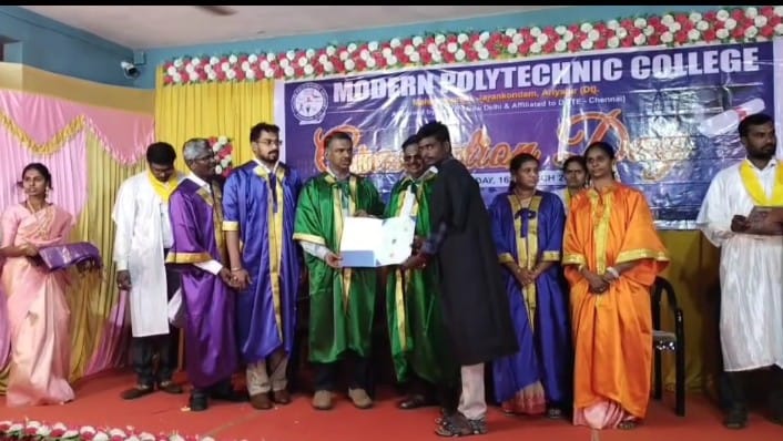 அரியலூர் மாவட்டம் ஜெயங்கொண்டம் மகிமைபுரம் மாடர்ன் கல்வி குழுமத்தின் பாலிடெக்னிக் கல்லூரியின் முதலாவது பட்டமளிப்பு விழா குழுமத்தின் தலைவர் முனைவர் சி பழனிவேல் அவர்கள் தலைமையில் நடைபெற்றது