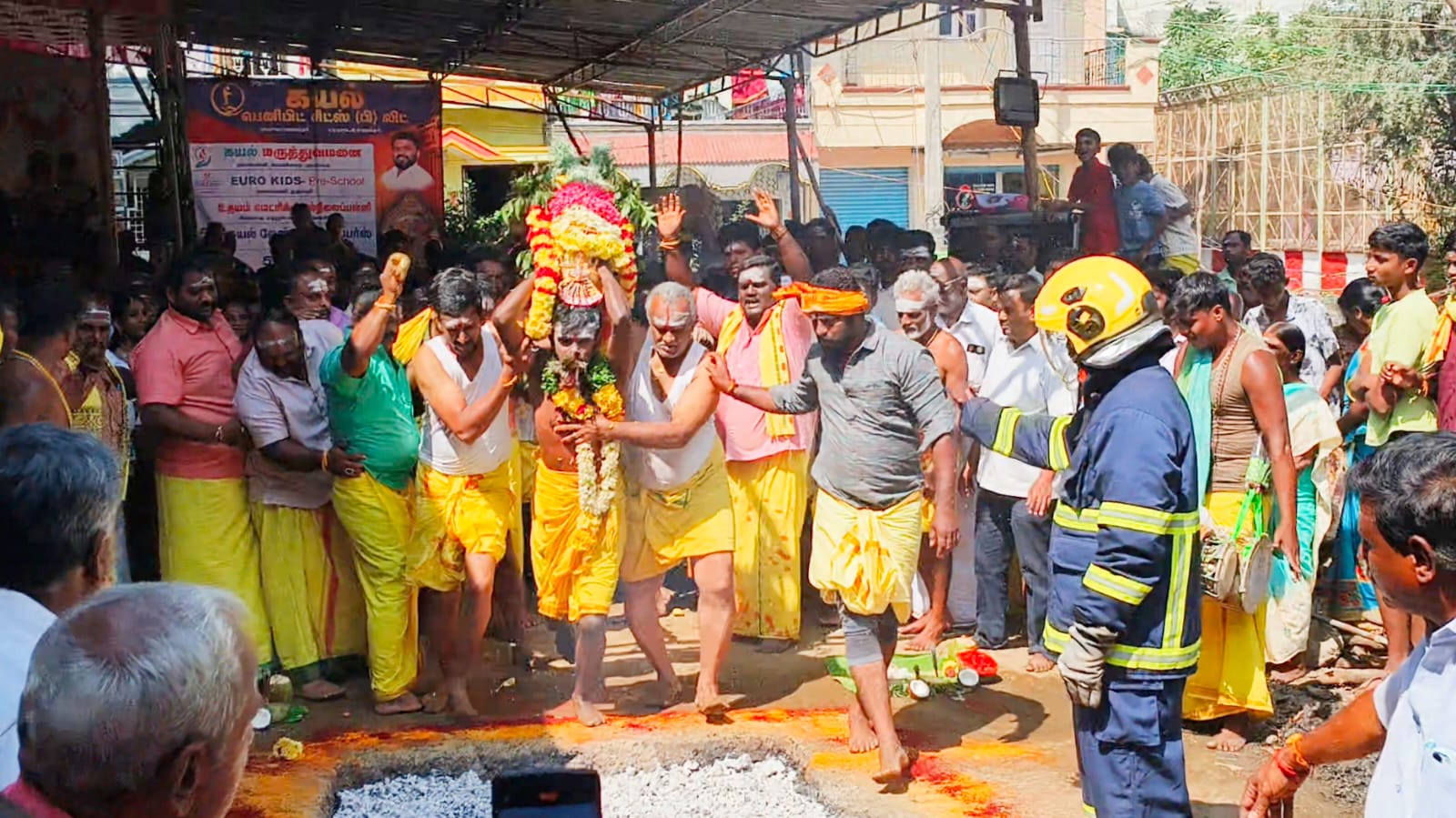 பின்னர் அக்னி குண்டத்தில் பக்தர்கள் உப்பு மிளகு உள்ளிட்டவற்றை போட்டு நேர்த்திக்கடனை செலுத்தினர். அப்போது பக்தர்கள் தங்களது நேர்த்தி கடனை செலுத்தும் வகையில் கோயிலுக்கு முன்பு தரையில் நீண்ட வரிசையில் படுத்தனர். சக்தி கரகம் எடுத்து வந்த பூசாரி தரையில் படுத்து இருந்த பக்தர்கள் மீது ஏரி மிதித்தவாறு சென்றார். . இதனை அடுத்து ஸ்ரீ அங்காள பரமேஸ்வரி அம்மனுக்கு சிறப்பு தீபா ஆராதனை நடைபெற்றது ஏராளமான பக்தர்கள் சாமி தரிசனம் செய்தனர்.