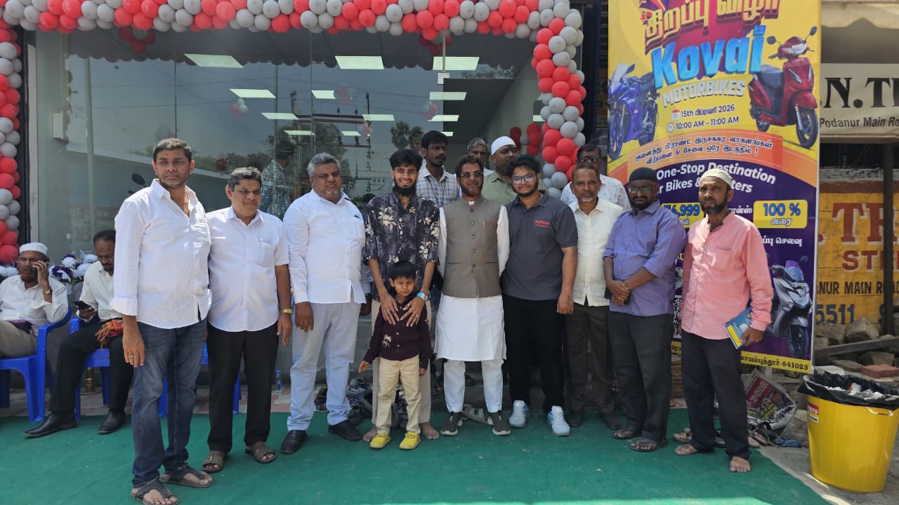கோவை போத்தனூர் சாலையில் கோவை மோட்டார் பைக்ஸ் எனும் இரு சக்கர வாகன விற்பனை மையத்தை தமிழக சிறுபான்மை ஆணைய உறுப்பினர் முகம்மது ரபி துவக்கி வைத்தார்
