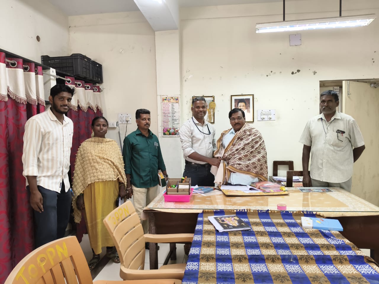 புதிதாக பதவியேற்றுள்ள வட்டாட்சியர் பழனிவேலுவை வட்ட துணை ஆய்வாளர் கிருஷ்ணமூர்த்தி,முதுநிலை வரைவாளர் சுரேஷ்குமார்,சர்வேயர்கள் சுரேணுகா,அழகேசன்,விஜயலதா,பாரத், கௌதம்,ராஜா, ரஞ்சித், பாஸ்கர்,மற்றும் பொறுப்பாளர்கள், உறுப்பினர்கள் பொன்னாடை அணிவித்து வாழ்த்து தெரிவித்தனர்.