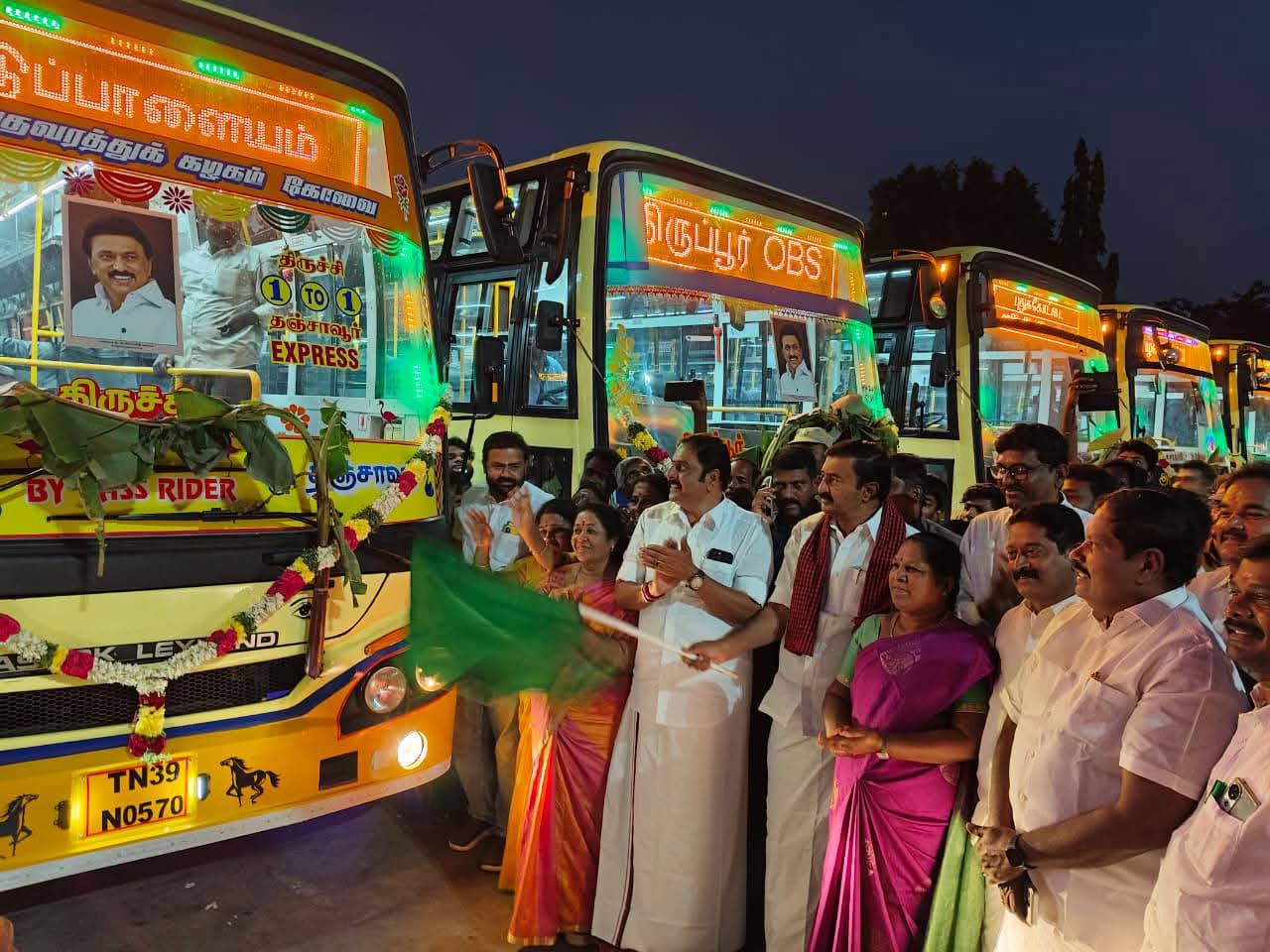 தாராபுரம் 8 புதிய வழித்தடங்களில் புதிய பேருந்துகளை அமைச்சர்கள் மற்றும் எம்பி துவக்கி வைத்தனர்.