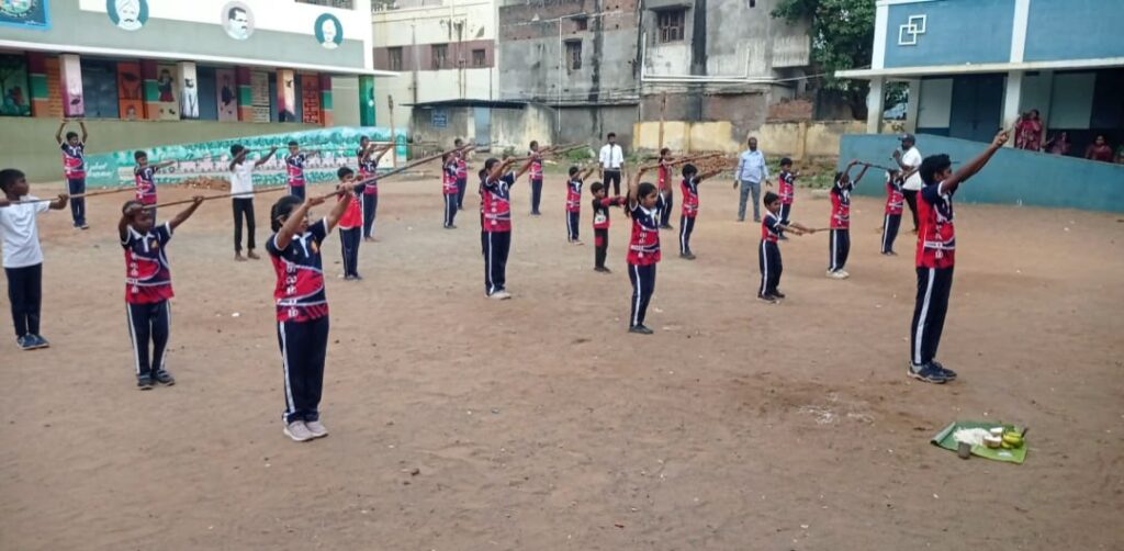 இந்நிகழ்ச்சியில் 100க்கும் மேற்பட்ட மாணவ மாணவியர் கலந்து கொண்டு சிலம்பம் ,ஒற்றை கம்பு ,கத்தி சண்டை,வாள் வீச்சு உள்ளிட்ட நான்கு பிரிவு செய்முறைகளை