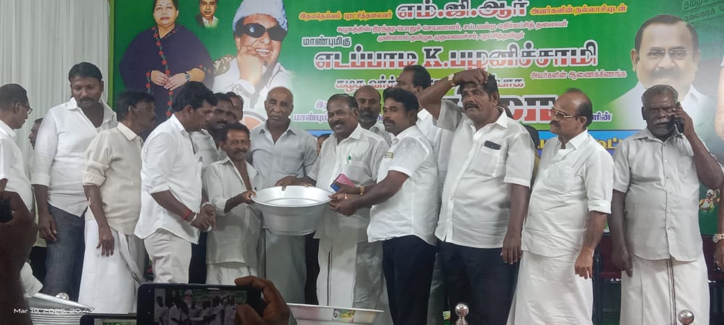 மாநில வா்த்தக அணி செயலாளரும் முன்னாள் அமைச்சருமான சி.த.செல்லப்பாண்டியன் 1500 பேருக்கு தையல் மிஷின் கிரையன்டர், எவர்சில்வர் குடம், அாிசி வேஷ்டி சேலை, அலுமினிய டவேரா, ஆகியவற்றை வழங்கி பேசுகையில் “அதிமுகவை தொடங்கி எம்.ஜி.ஆர் எல்லோருக்கும் நன்மை கிடைக்கும் வகையில் தமிழகத்தில் நல்லாட்சி நடத்தினாா். அவரது மறைவிற்கு பிறகு அவரால் அடையாளம் காட்டப்பட்ட ஜெயலலிதா பொதுச்செயலாளராக பணியாற்றி அவர் வழியிலேயே முதலமைச்சராக இருந்த காலம் வரை மக்கள் நலன்கருதி பள்ளி செல்லும் குழந்தைகளுக்கு புத்தகங்கள் மடிக்கணினி சைக்கிள் பெண்கள் திருமணத்திற்கு தாலிக்கு தங்கம் பணம் மிக்ஸி மின்விசிறி போன்ற பல்வேறு நல்லத்திட்டங்களை செயல்படுத்தி தமிழக மக்கள் நலன் கருதி வாழ்ந்தாா்.