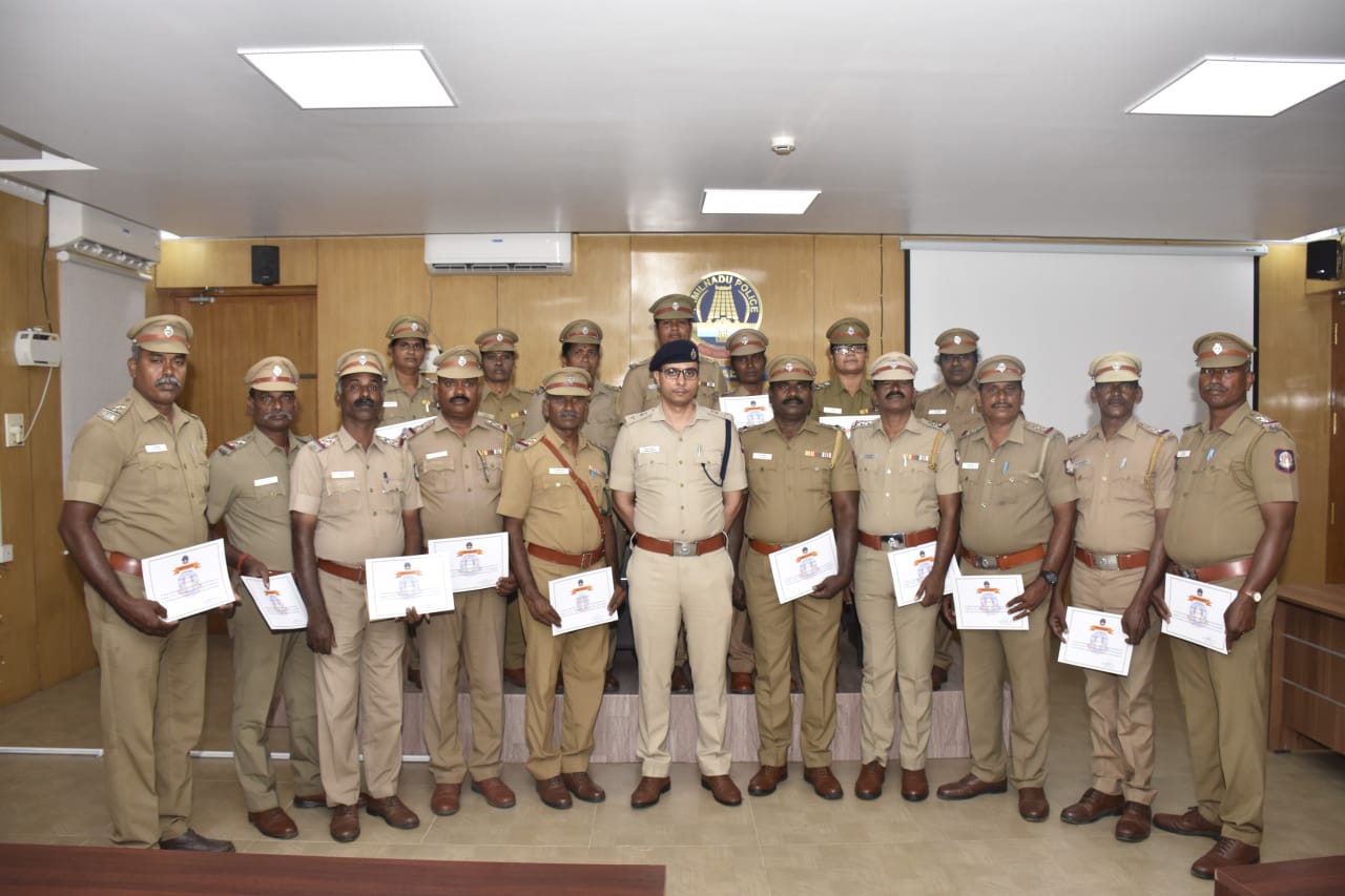 25 ஆண்டுகள் களங்கம் இன்றி சிறப்பாக பணி புரிந்த காவல்துறை அதிகாரிகளுக்கு மாவட்ட காவல் கண்காணிப்பாளர் சான்றிதழ் வழங்கி பாராட்டினார்கள்